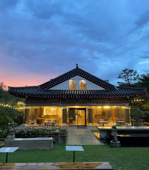 2층으로 되어있으며 1층에서는 통창이 있어 야경을 즐기기 좋고 2층은 아늑한 분위기를 느낄 수 있습니다. 분수도 있고 정원에는 곳곳에 테이블이 놓아져 있어 휴식을 즐길 수 있습니다.