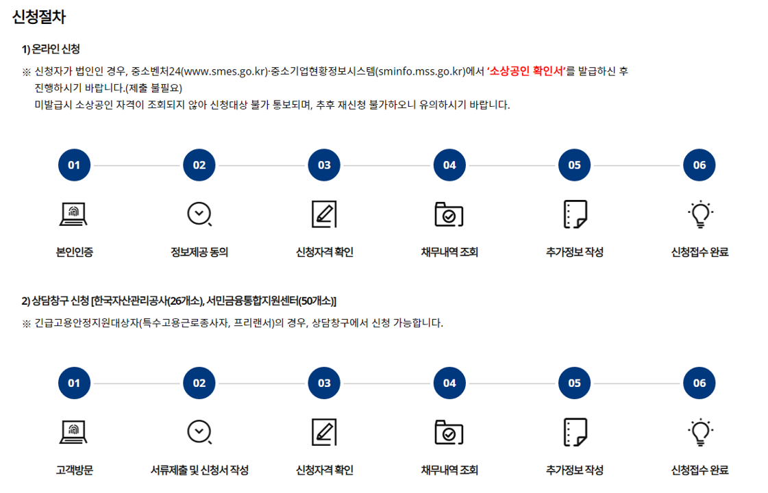 새 출발 기금 신청하러 가기