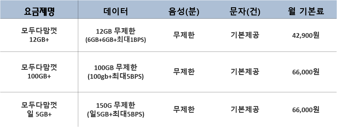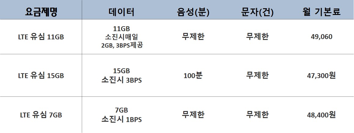 이번에는 데이터 사용량이 많은 요금제를 중심으로 작성해보았습니다.