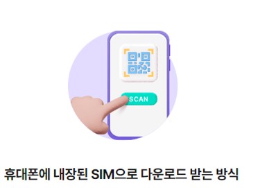 eSIM카드는 휴대폰 단말기에 내장되어 있습니다. 따라서 유심카드 없이 QR코드를 통해 활성화 단계를 거치면 사용할 수 있습니다.