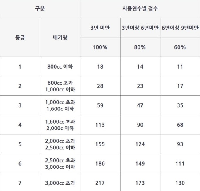 단, 사용연수가 9년 이상일 경우, 국가유공자, 보훈보상대상상이자 유일 경우 부과 제외